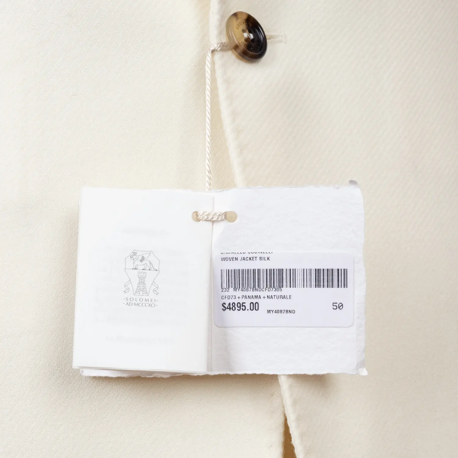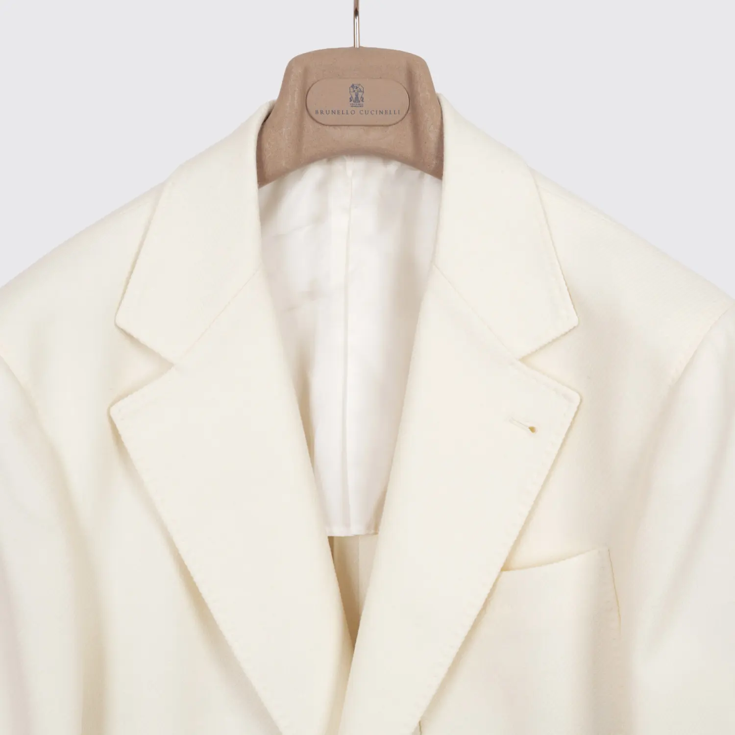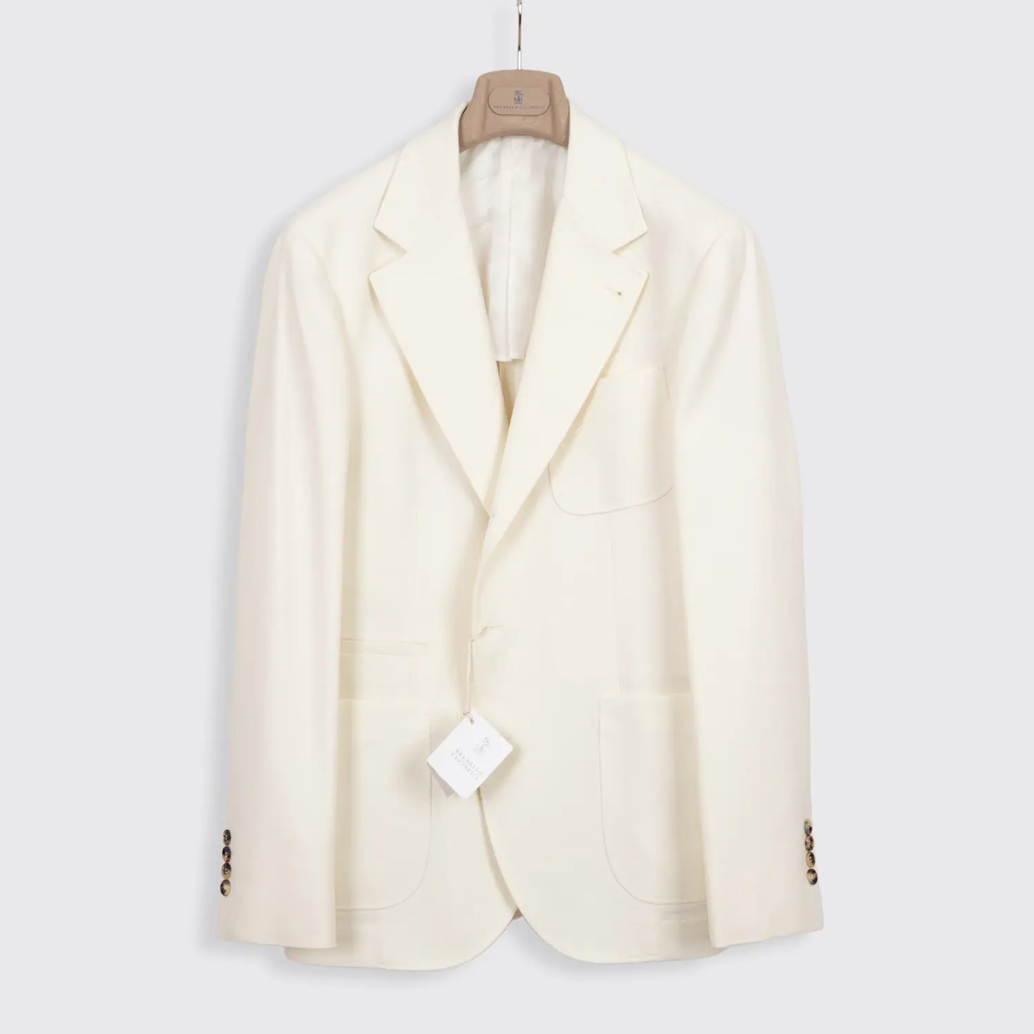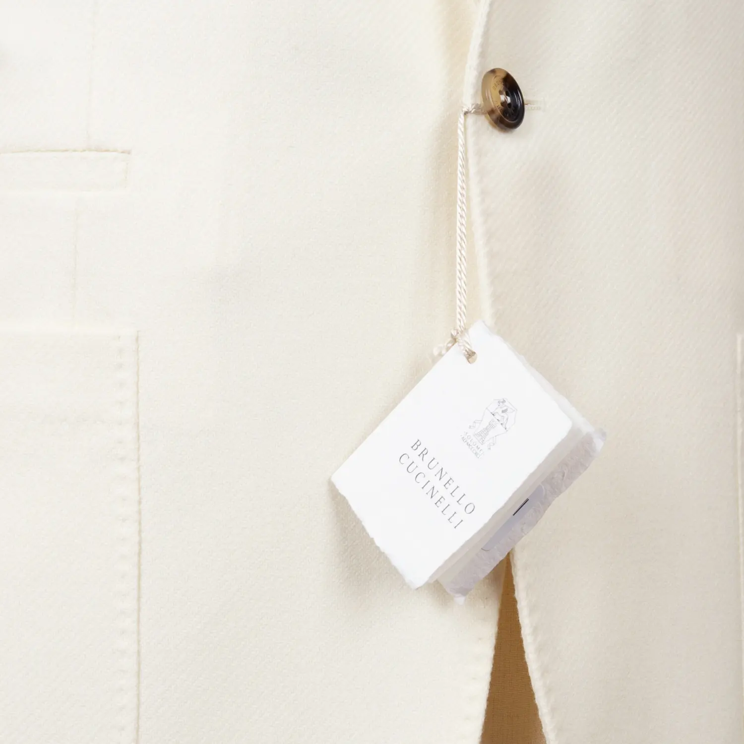 Soft Shoulder, Half Lined, 95% Wool, 3% Cashmere, 2% Silk, Natural Ivory White (Color Code CFD73), Handmade in Italy, Notch Lapel, Double-Vented, Three Button Closure, Est. retail: $4,895.00
