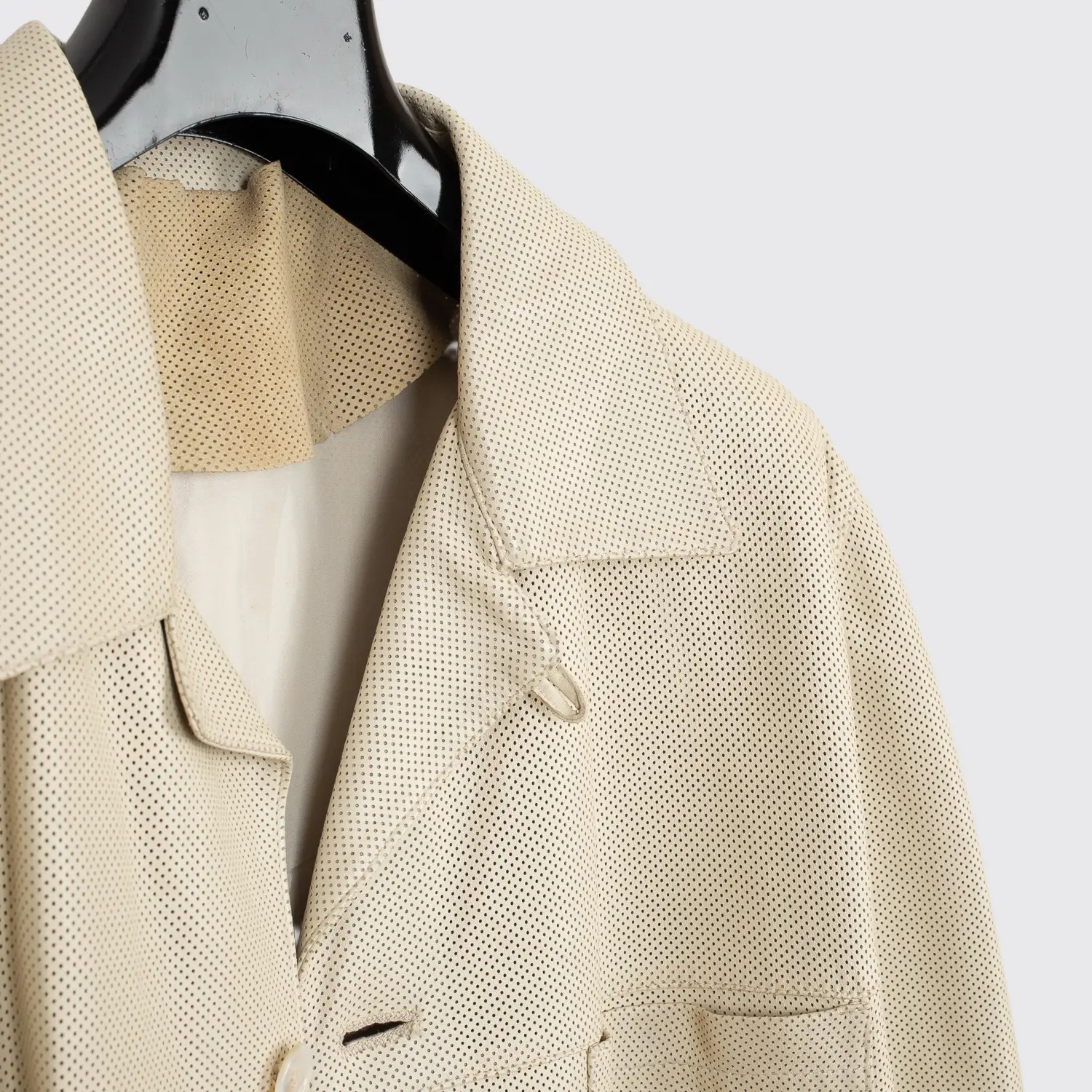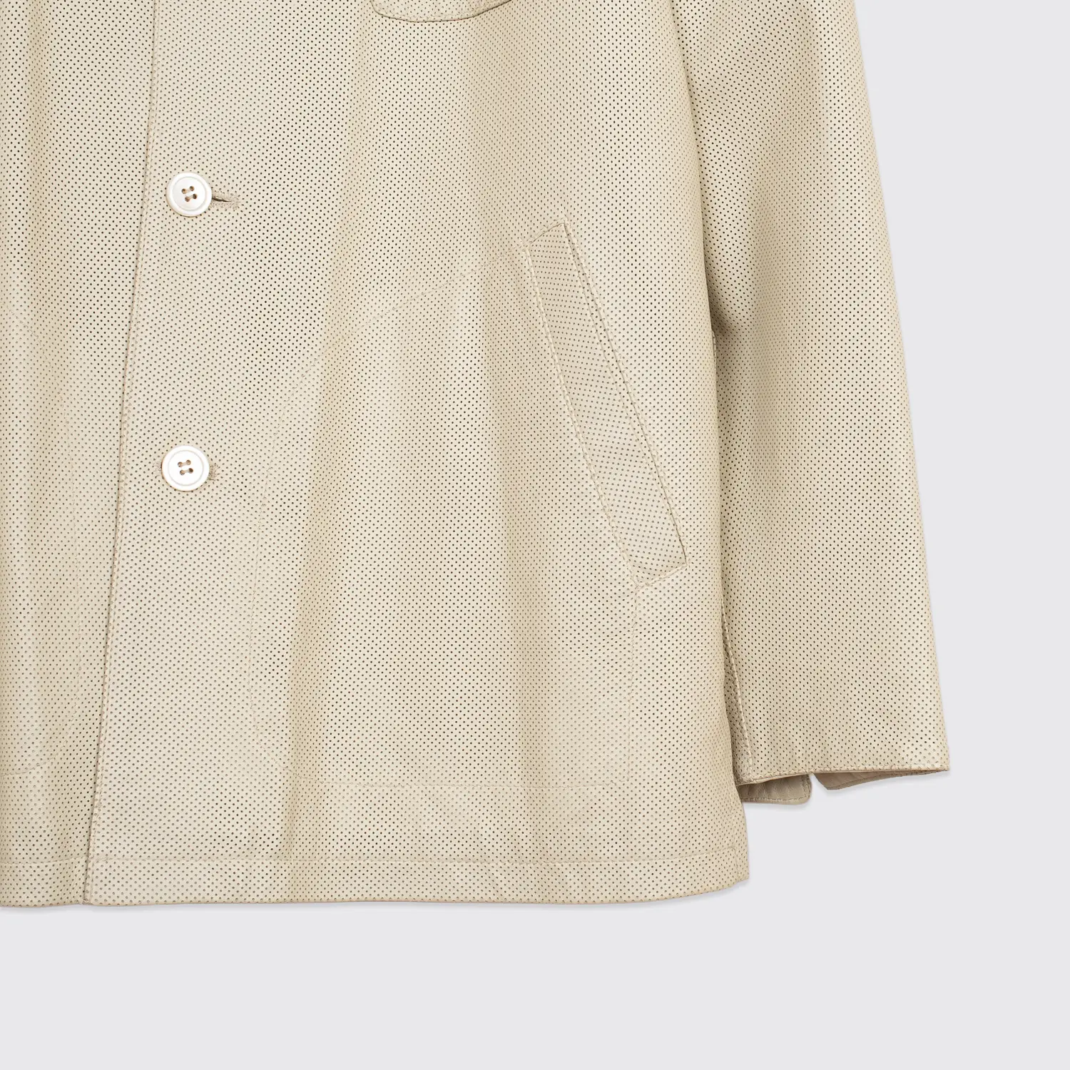 Perforated Leather Overshirt, 100% Leather, Button Closure, Fall Weight, Solid Pattern, Est. retail: $1,295.00