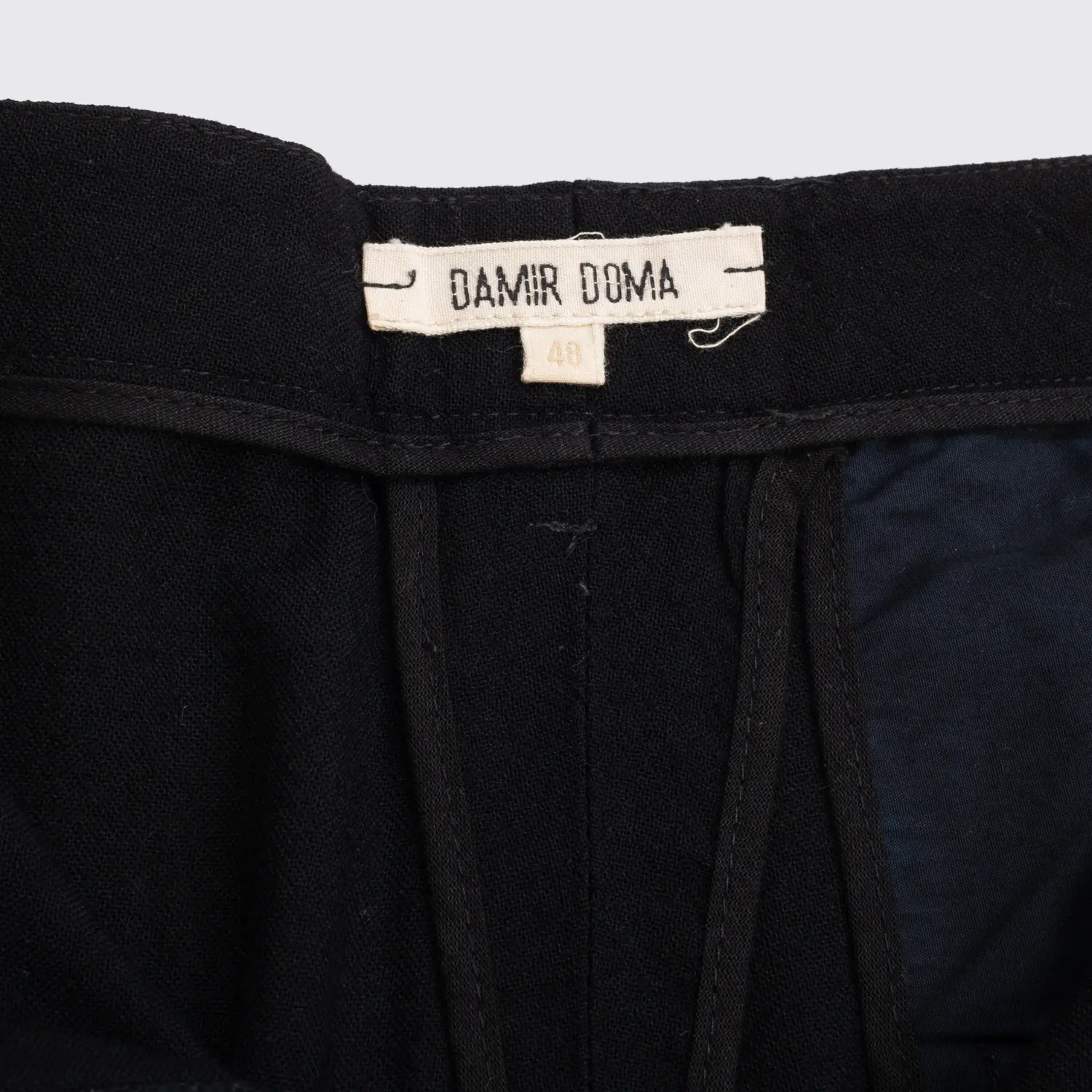 Damir Doma Pant Size EU48 Men Black Wool Pleated Drawstring with Zip Pockets