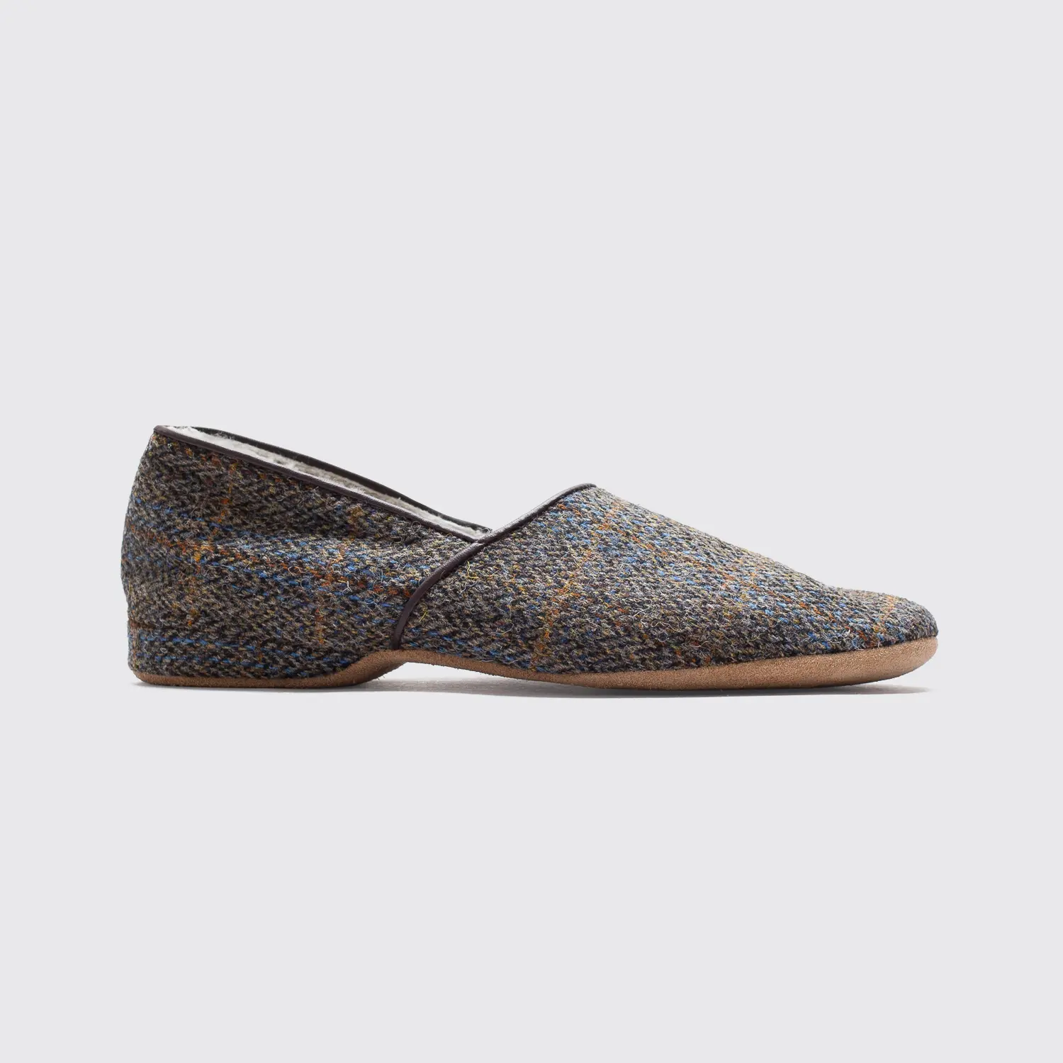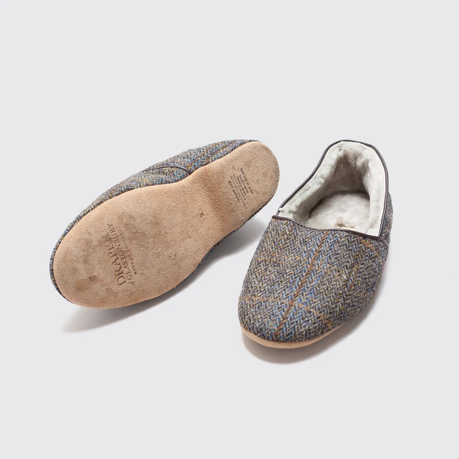 Draper of Glastonbury Lewis Shearling Slippers Size 9 Brown Tweed Made in UK