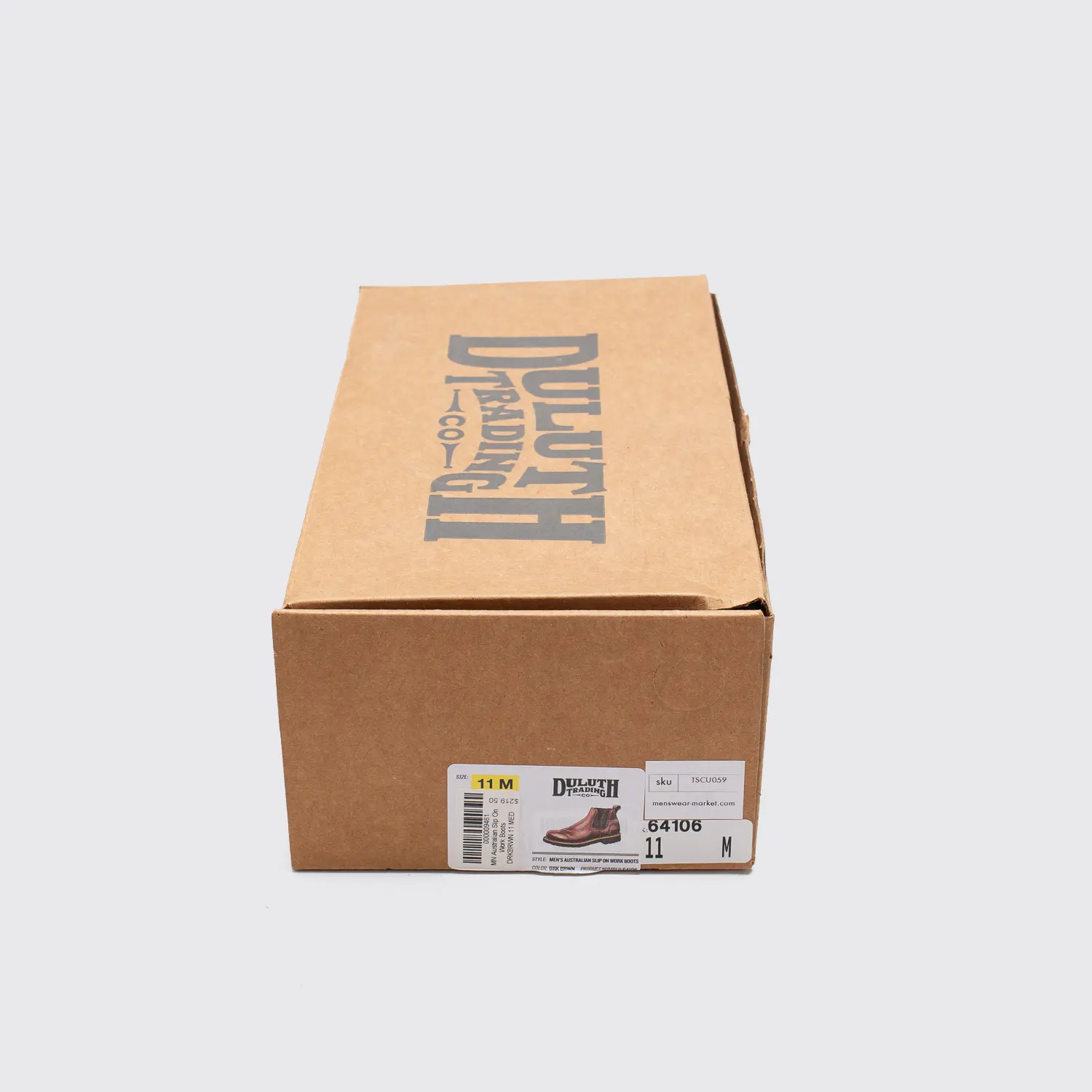 Australian Slip On Work Boots, Seidel Tanned Leather, Oil/Slip/Shock Resistant Sole, Stout Elastic Side Gores, Made in U.S.A., Est. retail: $219.50