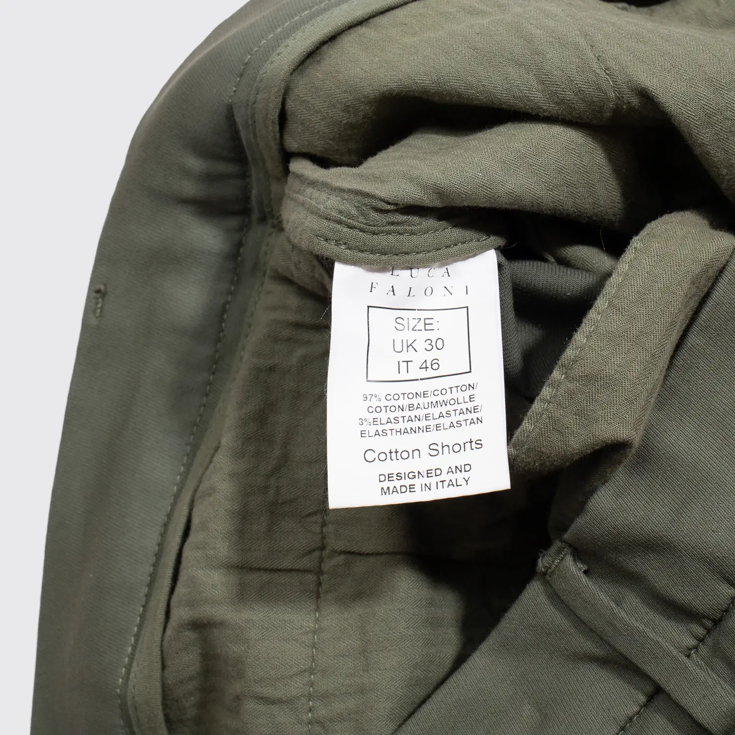 Luca Faloni Chino Shorts Size W30 (EU46) Men Olive Green Cotton Stretch