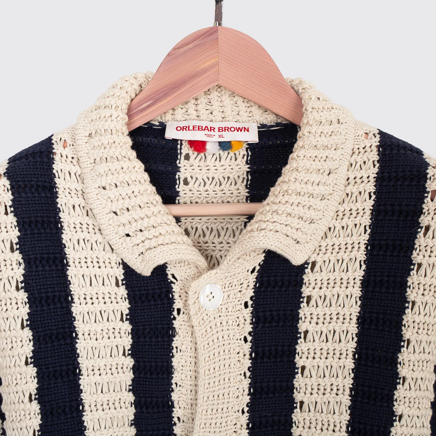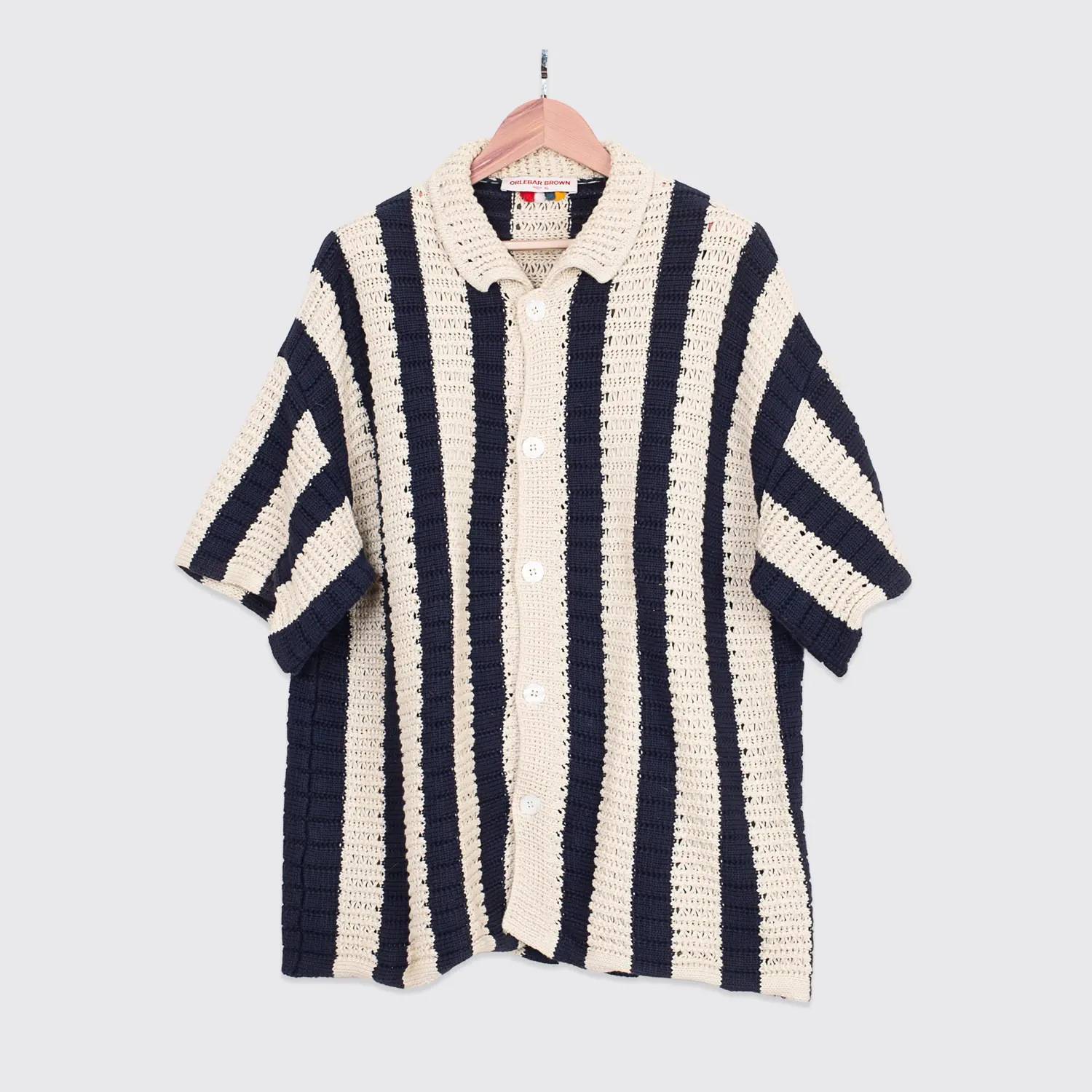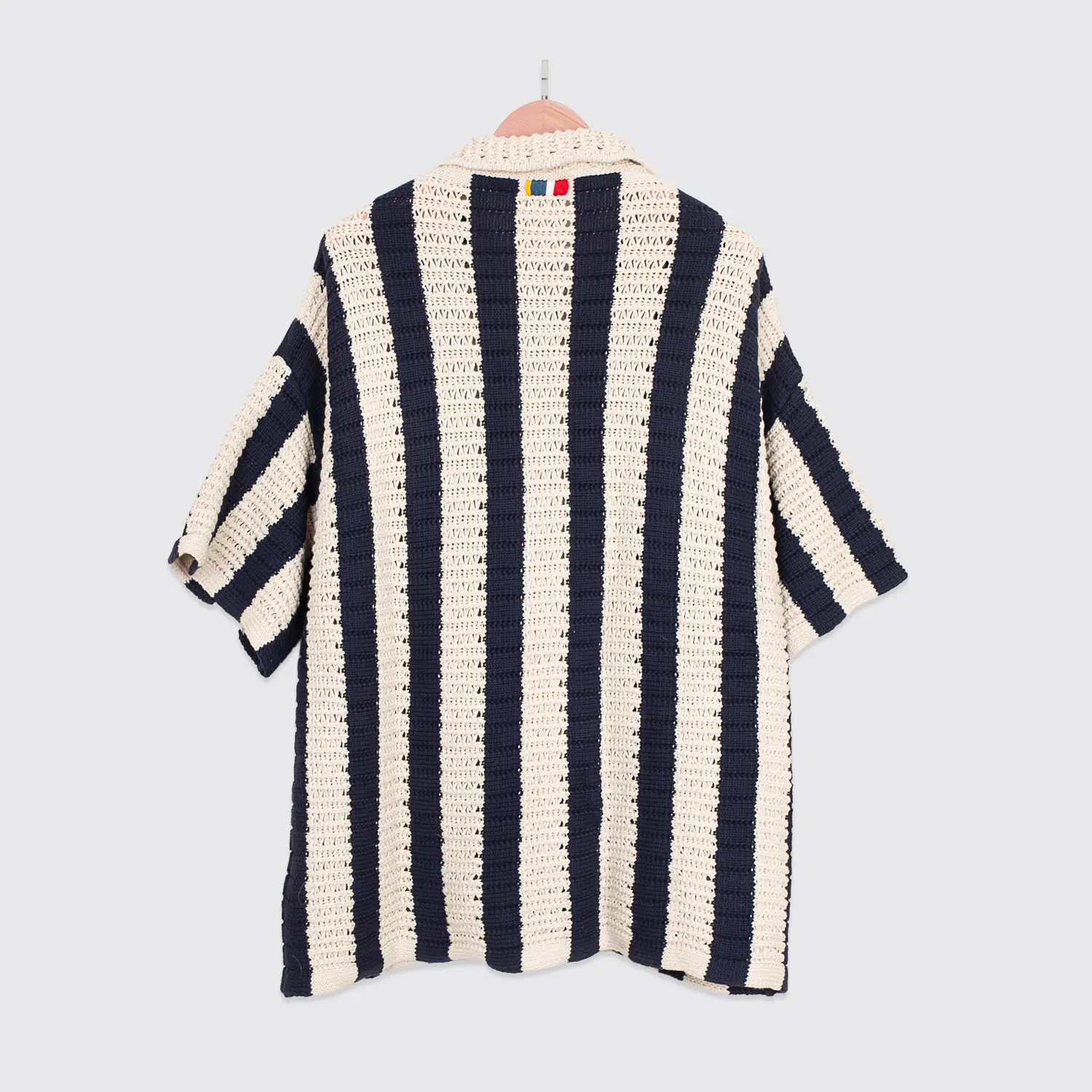 Thomas Crochet Shirt, 100% Cotton, Striped Pattern, Collared Neckline, Short Sleeve, Est. retail: $745.00