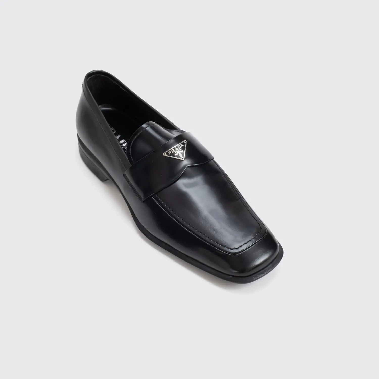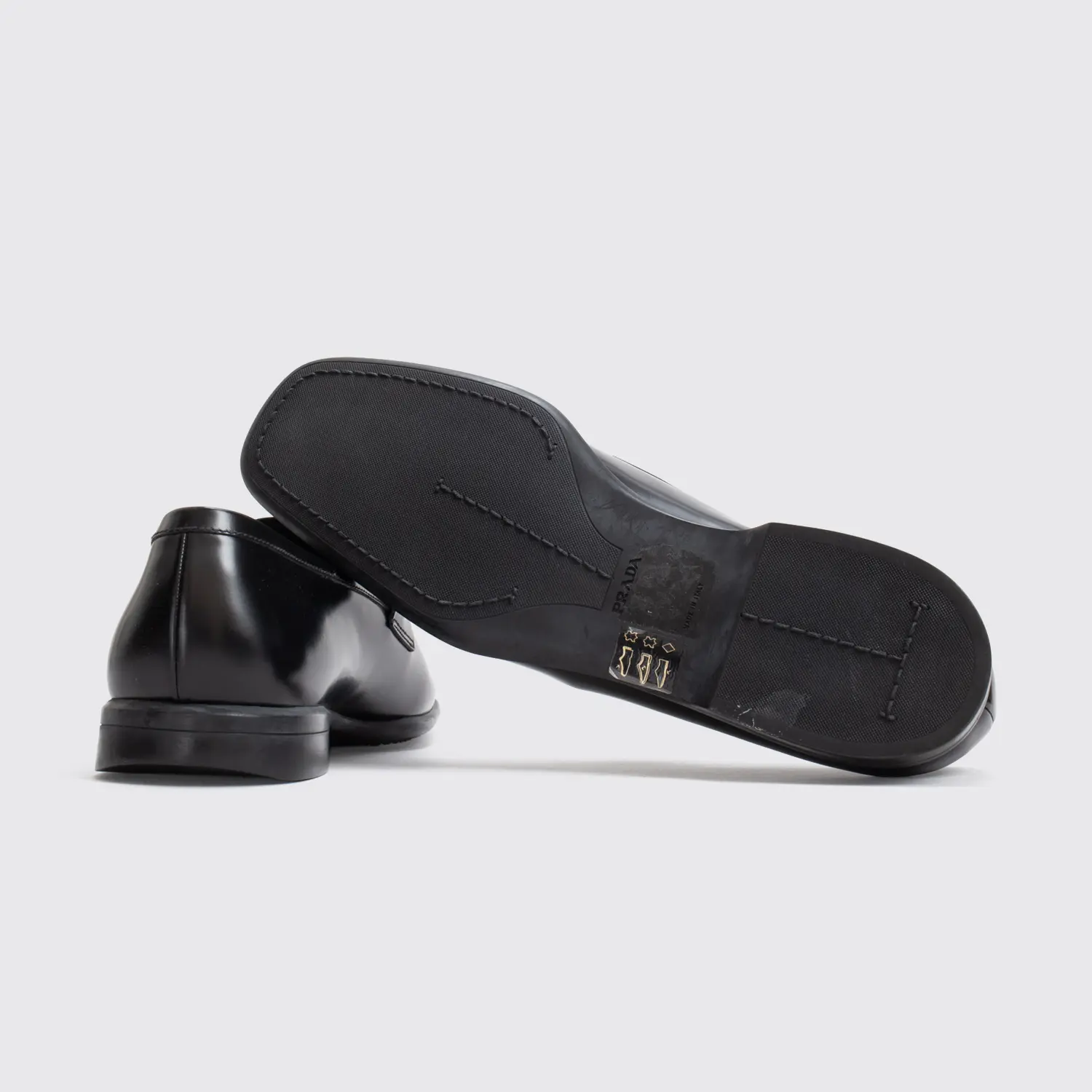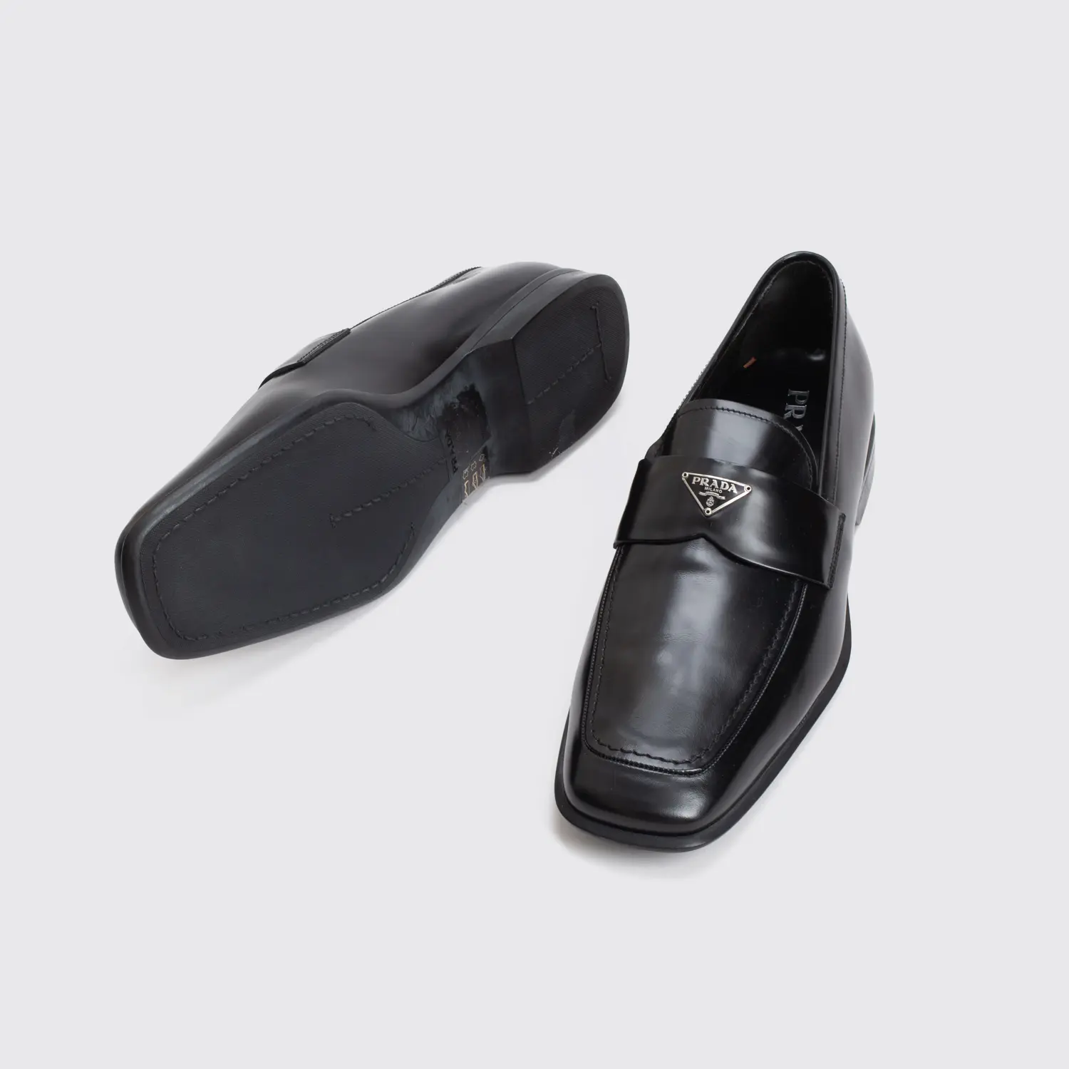 Prada Shoes Size UK11 Men Black Leather Triangle Emblem Spazzola Dress Loafer