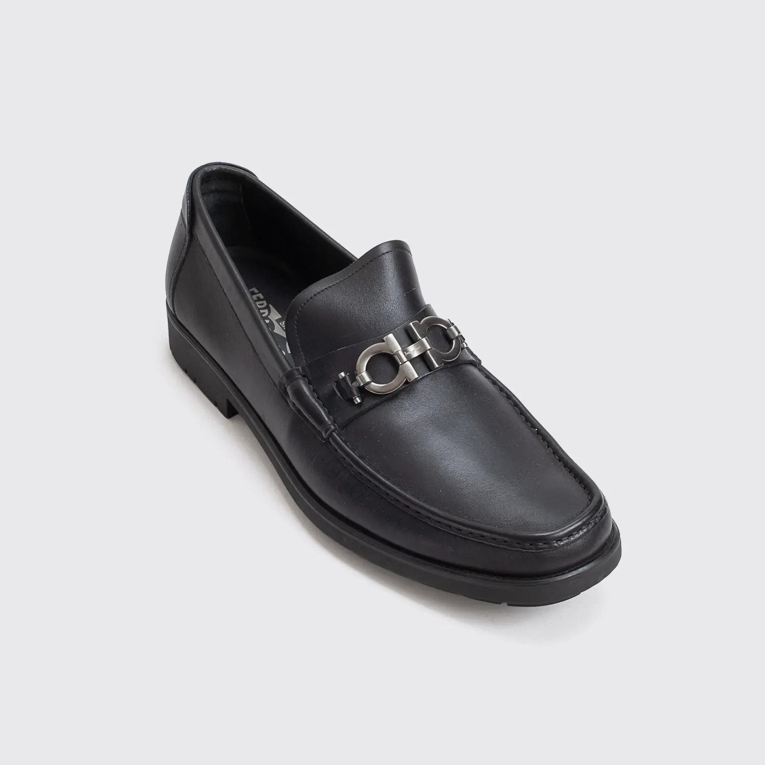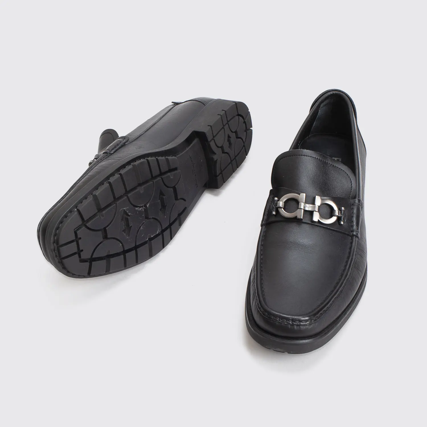 Gancini Loafer in Smooth Black Leather with Comfort Rubber Outsole, Slip On Closure, Square Toe, Rubber Sole, Solid Pattern, Est. retail: $795.00