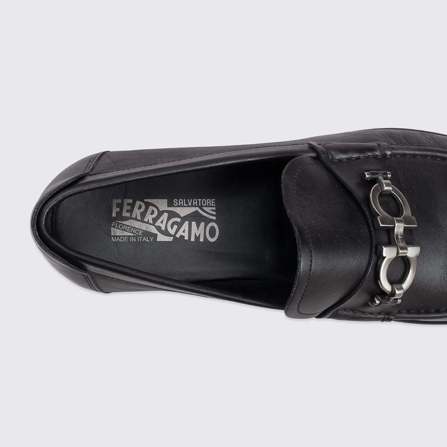 Salvatore Ferragamo Shoes Size 12 EE Men Black Smooth Leather Gancini Loafer