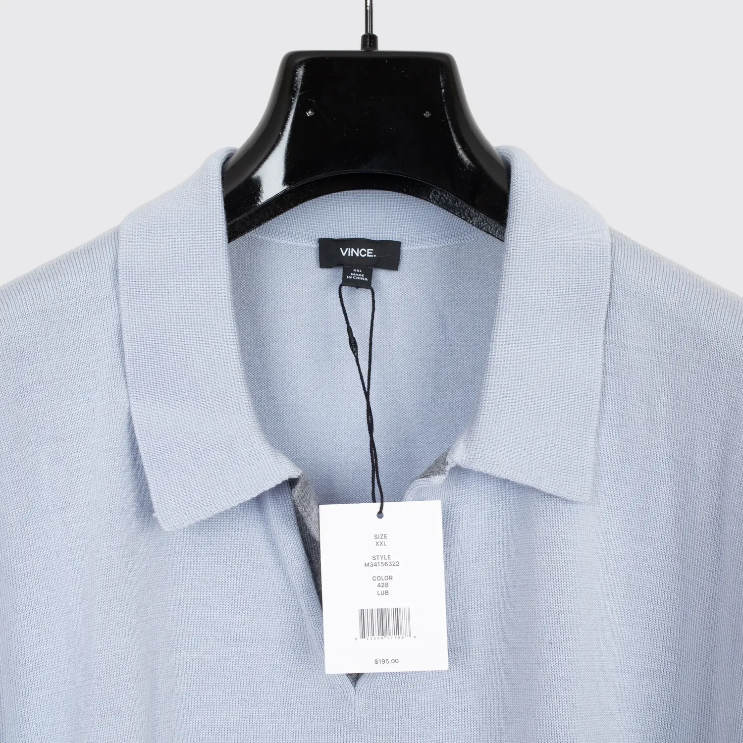 Vince Knit Polo Shirt Size 2XL Men Light Blue Gray Wool Silk Blend Lightweight