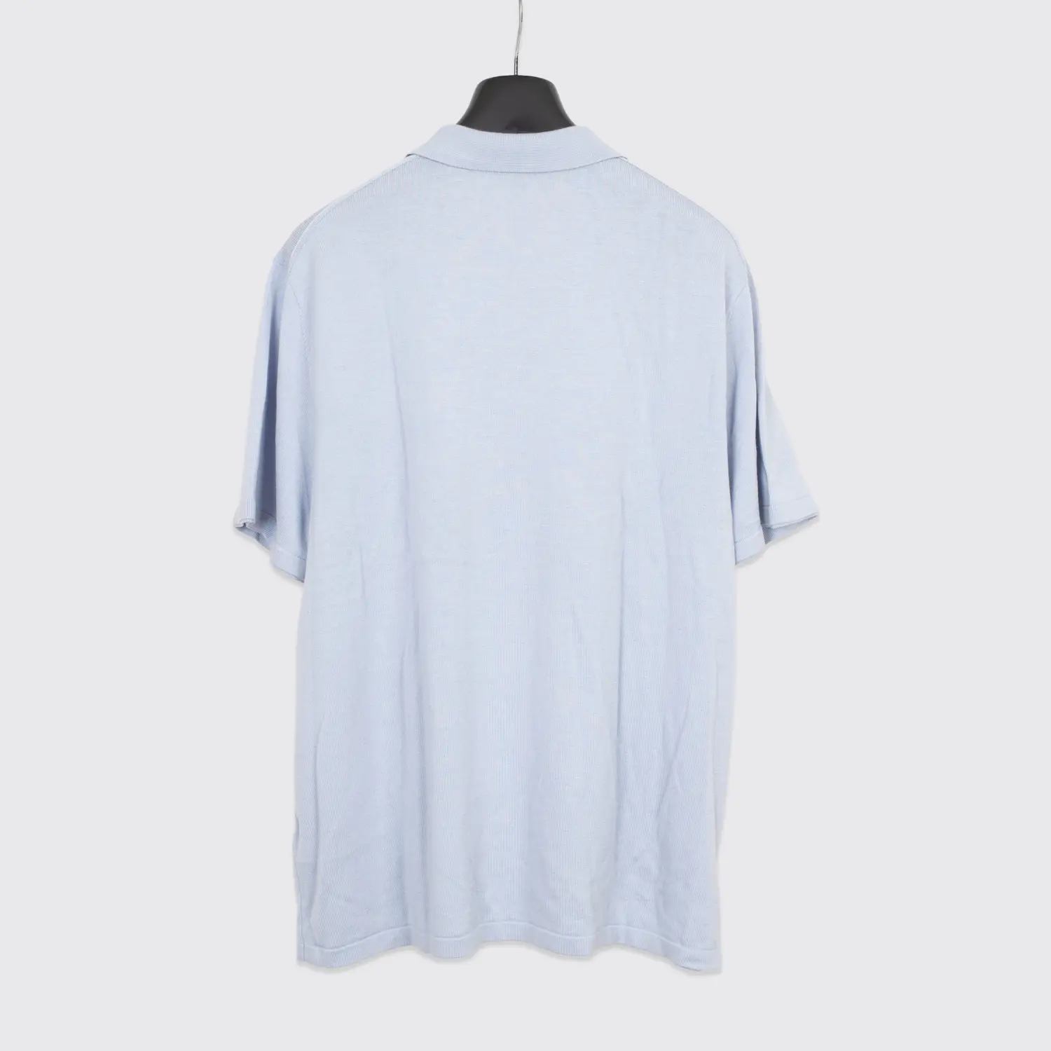 Knit Polo Shirt, 70% Wool, 30% Silk, Ribbed Trim, Lightweight, Contrast Gray Placket, Est. retail: $195.00